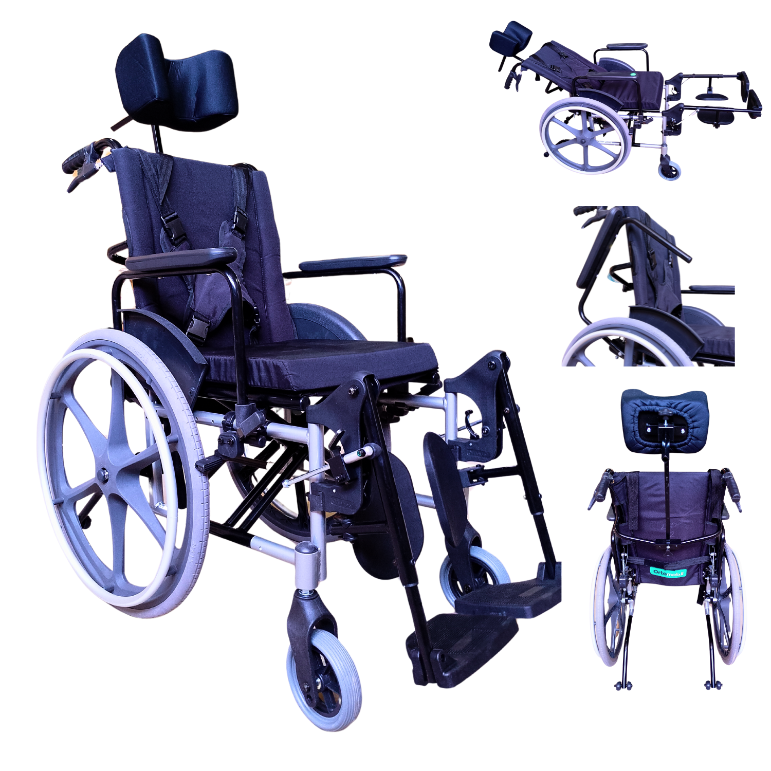 A cadeira de rodas reclinável alumínio Ortomobil dobrável X com apoio de cabeça é um produto de alta qualidade, com registro na Anvisa e no Inmetro.