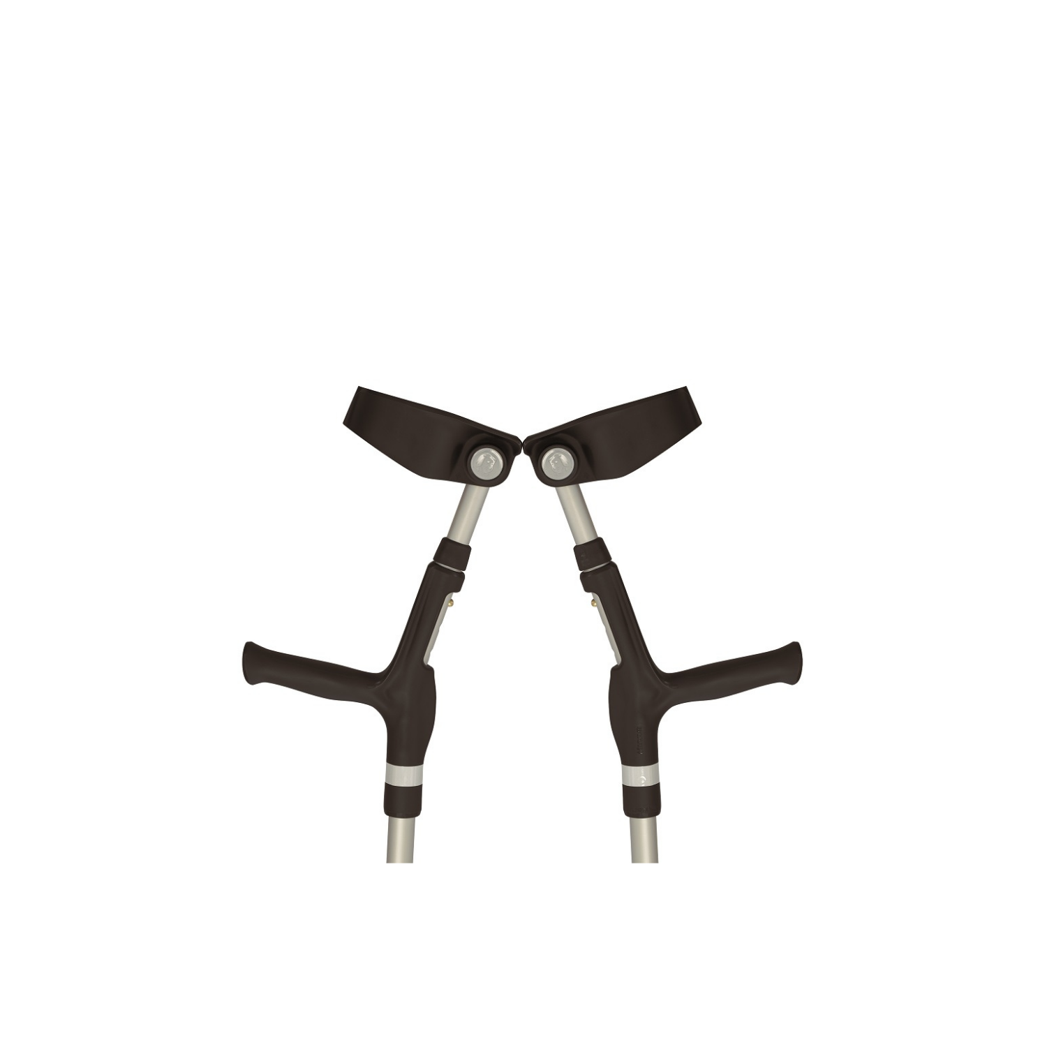 Braçadeira articulada: com bordas superiores em formato anatômico, que possibilitam melhor encaixe do antebraço, reduzindo pontos de pressão e desconforto tanto durante a caminhada quanto em repouso. O sistema de articulação permite sustentação da muleta no antebraço, o que facilita o uso em momentos nos quais há necessidade de mãos livres, como subir escadas utilizando o corrimão, abrir portas e servir-se em restaurante.