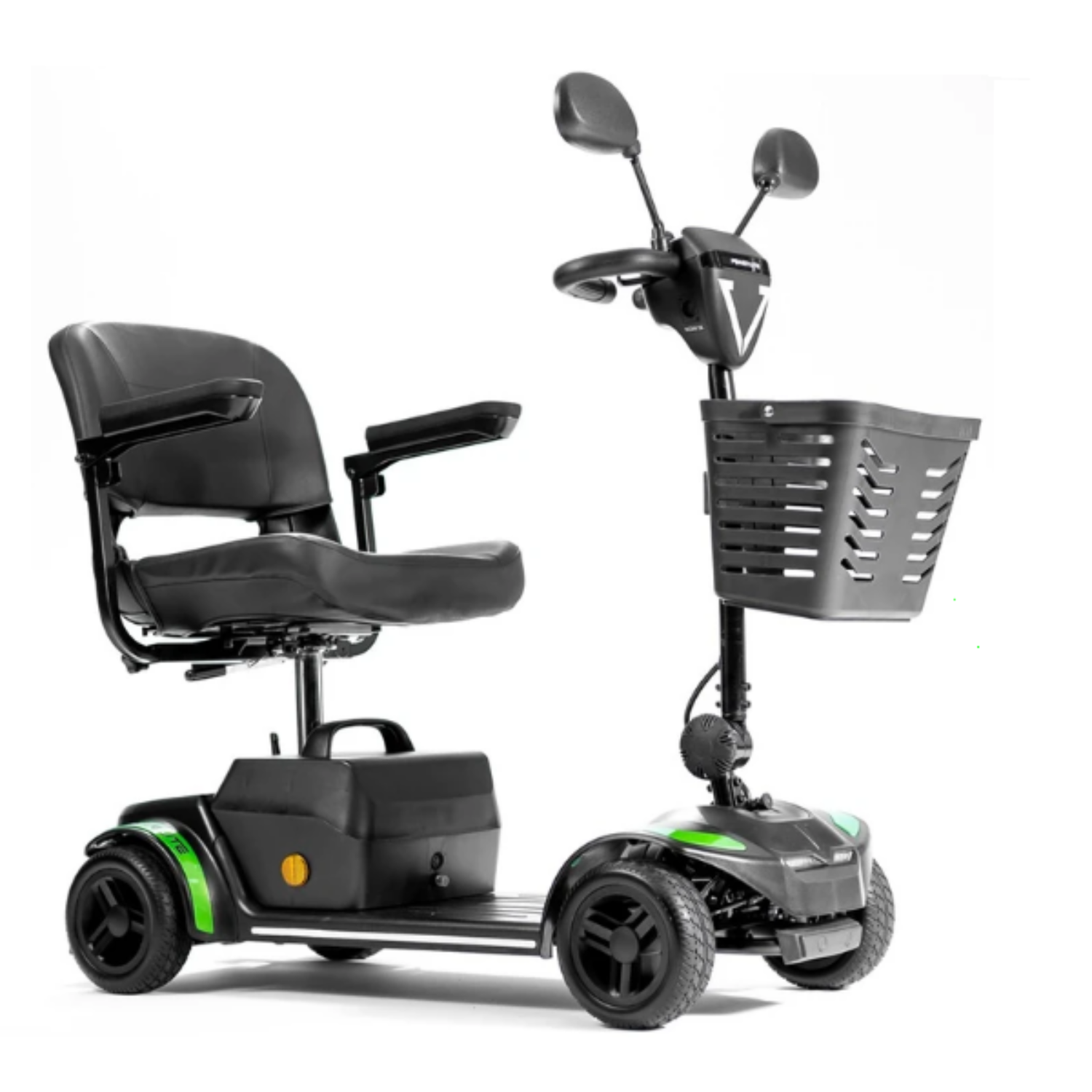 Seu banco giratório de 360º facilita o acesso e a saída da scooter, enquanto a cesta removível e o bolsão traseiro garantem espaço para seus pertences.